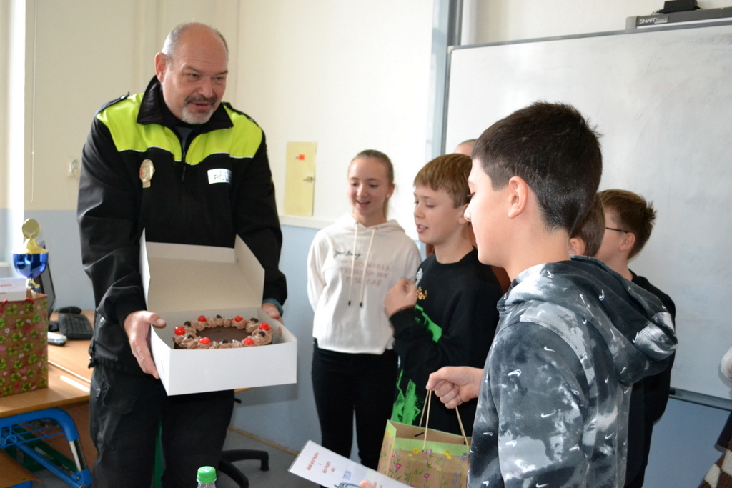 Dne 12.10 2023 proběhl v Prachaticích branný den. Zúčastnily se ho všechny 6. třídy základních škol a 1.A našeho gymnázia. Soutěžilo se v různých disciplínách např. první pomoc, hod granátem, orientace v terénu a podobně. Družstev bylo 19 po 7-8 dětech. Naše třída 1.A, která byla rozdělena do čtyř družstev, obsadila 8., 7., 2., a dokonce i 1. místo! Gymnázium tak získalo na letošní rok putovní pohár a třída 1.A si zaslouženě pochutnala na dortech a dalších dobrotách.
