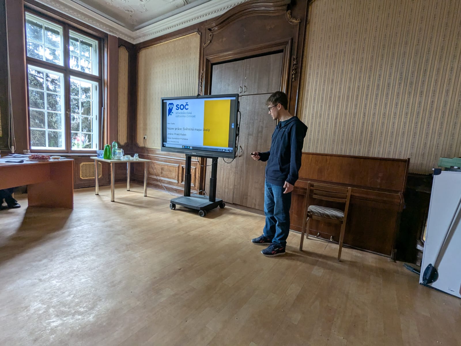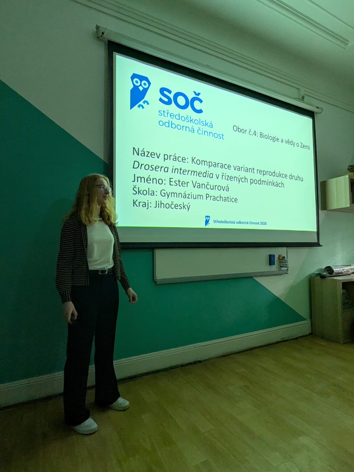 Po školním kole Středoškolské odborné činnosti v oblasti přírodních věd, kde studenti prezentovali své práce, se konala 14. 4. 2026 přehlídka na krajské úrovni. Naši studenti si vedli v silné konkurenci dalších gymnázií velmi dobře a jejich vystoupení před odbornou komisí  byla naprosto profesionální.