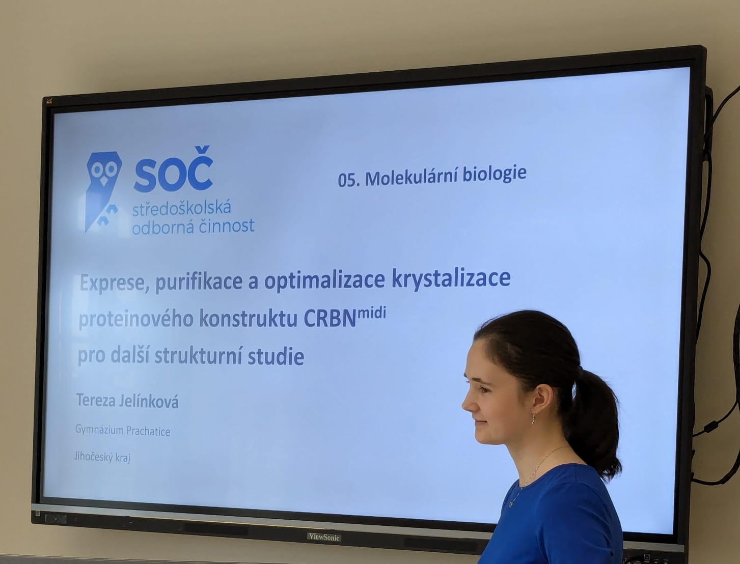 A výsledky? Tereza Jelínková obsadila 1.místo v sekci Molekulární biologie a zajistila si postup do celorepublikového kola, které se bude odehrávat v červnu v Olomouci.