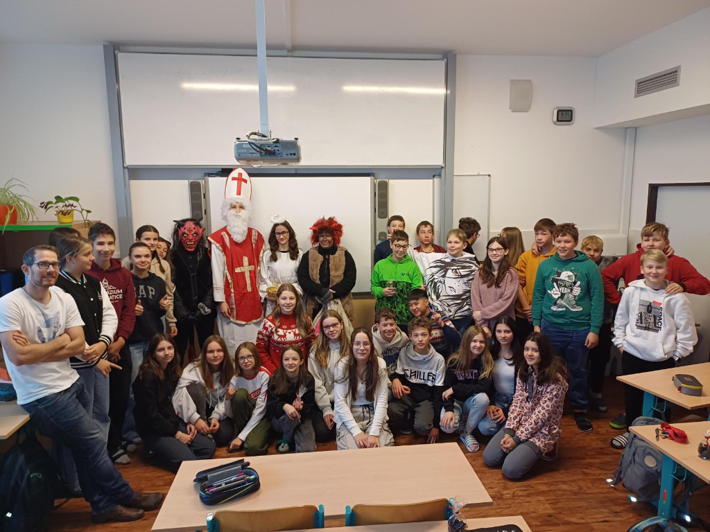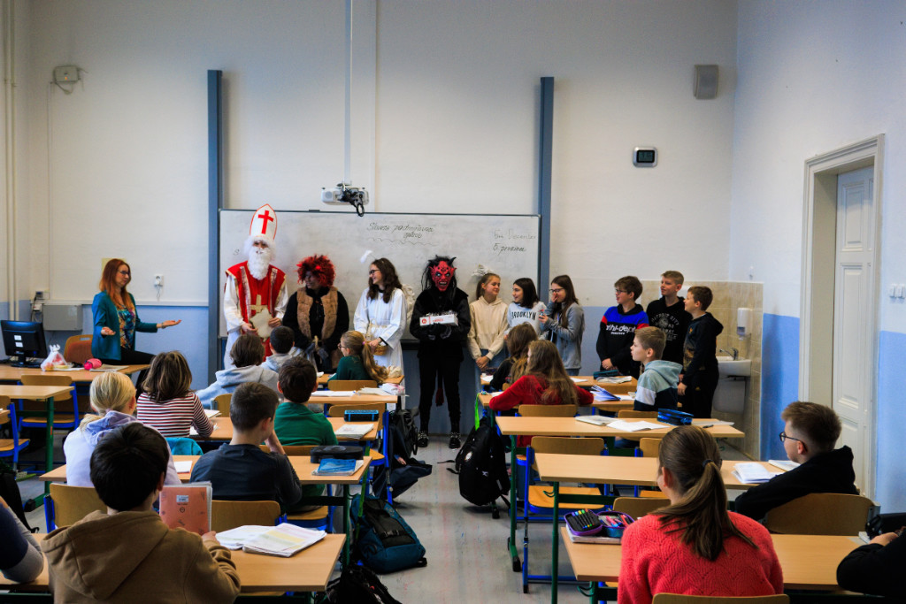I na našem gymnáziu 5. 12. řádili čerti, zastavili se v primě a sekundě, kde hodné studenty Mikuláš odměnil a ty zlobivé viděli jejich spolužáci nejspíš naposledy. Naštěstí, u nás zlobiví studenti nejsou. Děkujeme studentům 3.B, kteří akci uspořádali.
