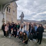 Druhý dubnový týden jsme přivítali skupinu slovenských studentů z partnerského Gymnázia V. B. Nedožerského v Prievidzi. Vedle exkurzí na zámek Hluboká, do Českých Budějovic a Českého Krumlova pracovali naši i slovenští studenti na společném dějepisném projektu Šumavský historický bedekr. Ve dvou dopoledních blocích měli za úkol vytvořit pro fiktivní cestovní kancelář turistického průvodce ve slovenštině pro jeden den na Šumavě, konkrétně v oblasti Volary – České Žleby – Strážný. Trasa byla daná a každá skupina měla zpracovat informační stránku pro dvě zastavení.
