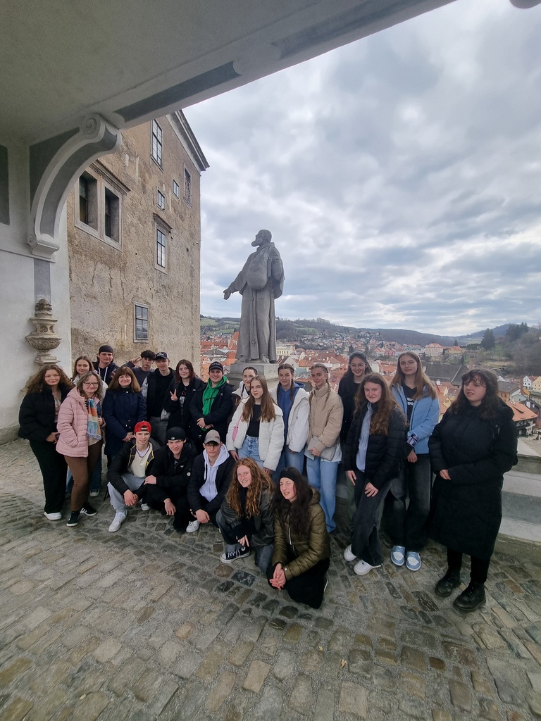 Druhý dubnový týden jsme přivítali skupinu slovenských studentů z partnerského Gymnázia V. B. Nedožerského v Prievidzi. Vedle exkurzí na zámek Hluboká, do Českých Budějovic a Českého Krumlova pracovali naši i slovenští studenti na společném dějepisném projektu Šumavský historický bedekr. Ve dvou dopoledních blocích měli za úkol vytvořit pro fiktivní cestovní kancelář turistického průvodce ve slovenštině pro jeden den na Šumavě, konkrétně v oblasti Volary – České Žleby – Strážný. Trasa byla daná a každá skupina měla zpracovat informační stránku pro dvě zastavení.
