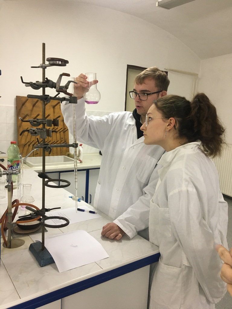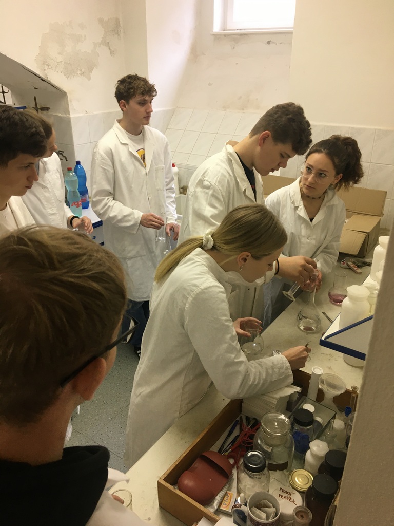 Po podzimním, velmi vydařeném pobytu českých studentů ve Freyungu, k nám v pondělí 6. května zamířila německá skupina. První den byl odpočinkovějšího rázu, kdy jsme německé studenty provedli po naší škole, zúčastnili se naší výuky a ukázali jsme jim historické centrum města. K večeru jsme společně opékali špekáčky, zeleninu a různé pochutiny. Bohužel jsme po pár minutách museli nechat opékání a schovat se před deštěm, ale i tak se jednalo o vydařený večer. Déšť nás neopustil ani v úterý, kdy jsme se vydali na pěší túru z Husince přes Oseky až do Prachatic. Během výletu jsme nasbírali různé vzorky vod, které se ve středu analyzovaly. Načerpané síly během odpoledne, kdy byl volný program, jsme využili při večerním hraní bowlingu a pizze. Poslední den návštěvy německých studentů, středa, se nesl ve znamení chemie a dějepisu. Různé vzorky vod získané nejen v úterý, jsme podrobili našim zkušenostem s titrací a po výpočtech jsme zjistili i tvrdost vody a obsahy hořečnatých a vápenatých iontů. Poledne jsme strávili v prachatickém muzeu a celý pobyt jsme zakončili v restauraci společným obědem. Rozloučili jsme se a němečtí studenti se vydali na cestu domů. Těšíme se na další turnus programu Erasmus+, financovaný z fondů Evropské Unie.