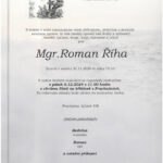 S hlubokým zármutkem oznamujeme, že nás navždy opustil pan Mgr. Roman Říha, dlouholetý pedagog našeho gymnázia, který zemřel po těžké nemoci.