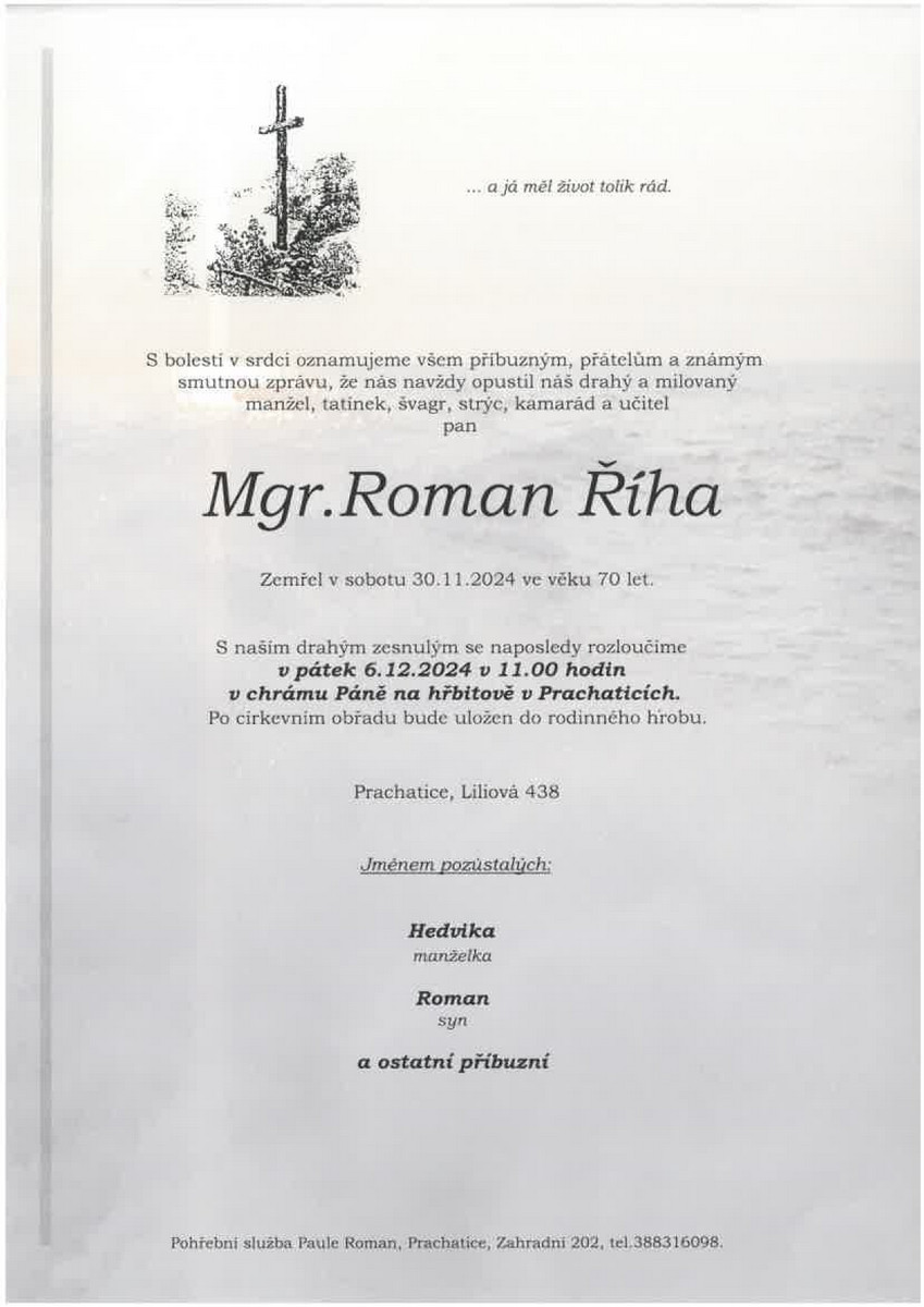 S hlubokým zármutkem oznamujeme, že nás navždy opustil pan Mgr. Roman Říha, dlouholetý pedagog našeho gymnázia, který zemřel po těžké nemoci.