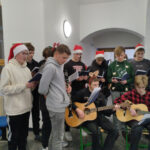 Zpívání vánočních koled před budovou gymnázia se stalo milou adventní tradicí naší školy. Tentokrát, v pondělí 4. prosince, však proběhlo pro nepřízeň počasí ve vstupní hale gymnázia. Příchozí posluchači mohli ochutnat vánoční perníčky, zahřát se horkým čajem či punčem. Domů si odnesli malý voňavý dárek. Děkujeme našim studentům – hudebníkům z 1. a 2. B a z 5. a 6. A za příjemné předvánoční odpoledne.