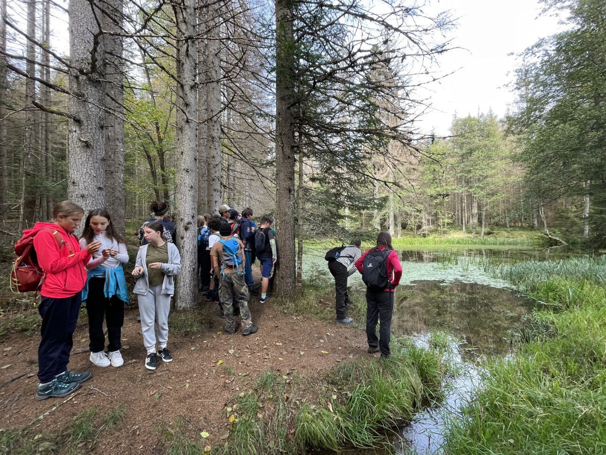 Dne 2. října se 15 žáků z tercie vydalo do Wildniscampu u Falkensteinu. První den jsme se ubytovali v chatkách, prozkoumávali jsme okolí Wildniscampu a seznamovali se s německými žáky. Následující den dopoledne byly na programu seznamovací hry, při kterých jsme se vzájemně učili nová česká a německá slovíčka. Odpoledne jsme šli na krátkou poznávající procházku a večer si u táboráku opekli Stockbrot. Ve středu jsme šli na celodenní výlet na Kleiner a Großer Falkenstein, na vrcholu jsme si dali oběd a tradiční pití Apfelsaftschorle. Čtvrteční dopoledne bylo věnováno různým společným aktivitám, z nichž byla nejzajímavější hra na převaděče, při které bylo zásadní dobře spolupracovat. Odpoledne jsme pak vyrazili do domu v divočině (Haus zur Wildnis), kde jsme viděli krátký film s působivými záběry přírody Bavorského lesa. Večer pro nás organizátoři pobytu připravili stezku odvahy a táborák. Poslední den v pátek jsme zakončili celý program vyhodnocením a jeli domů.